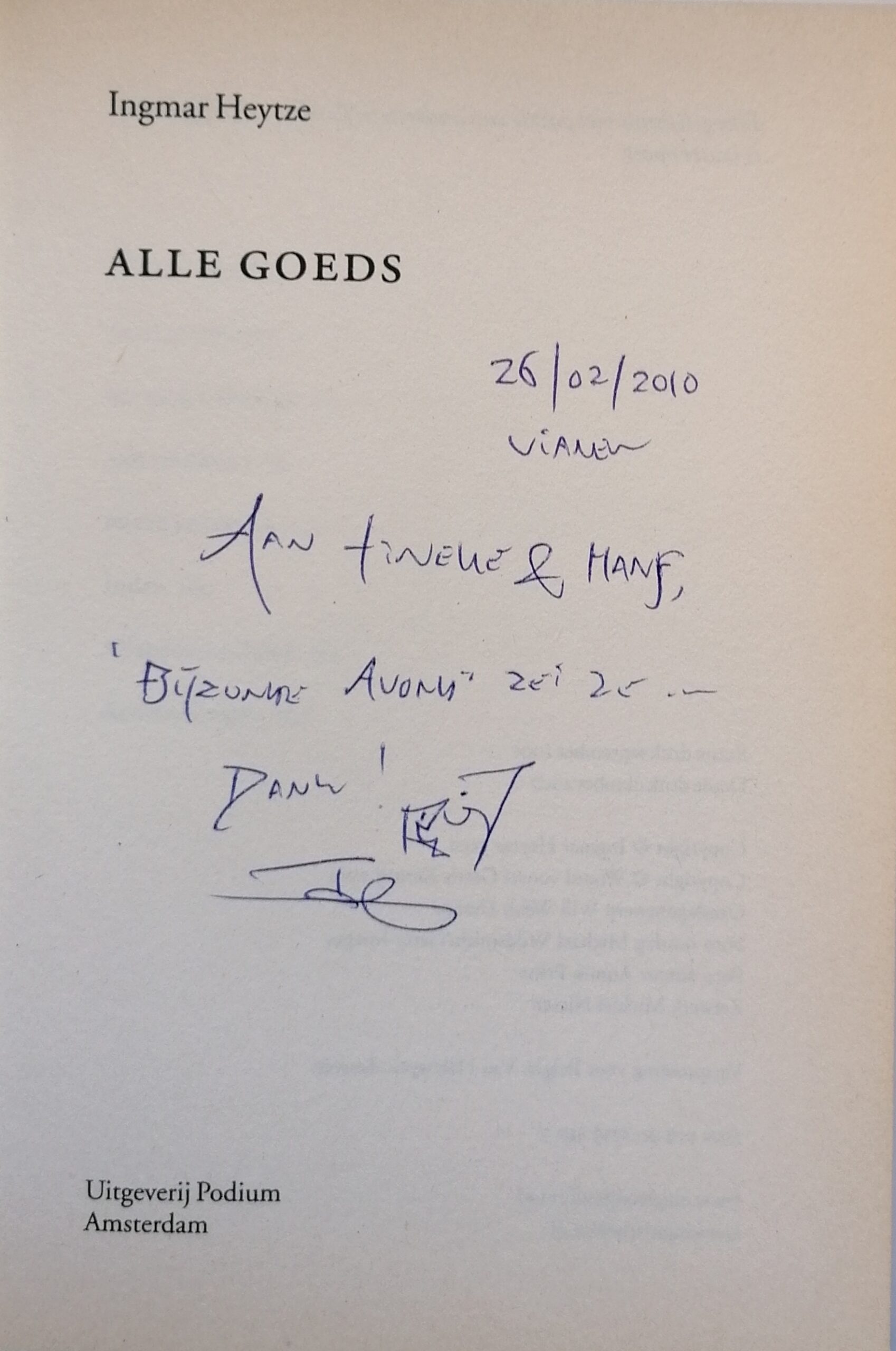 Ingmar Heytze; alle goeds. Gesigneerd
