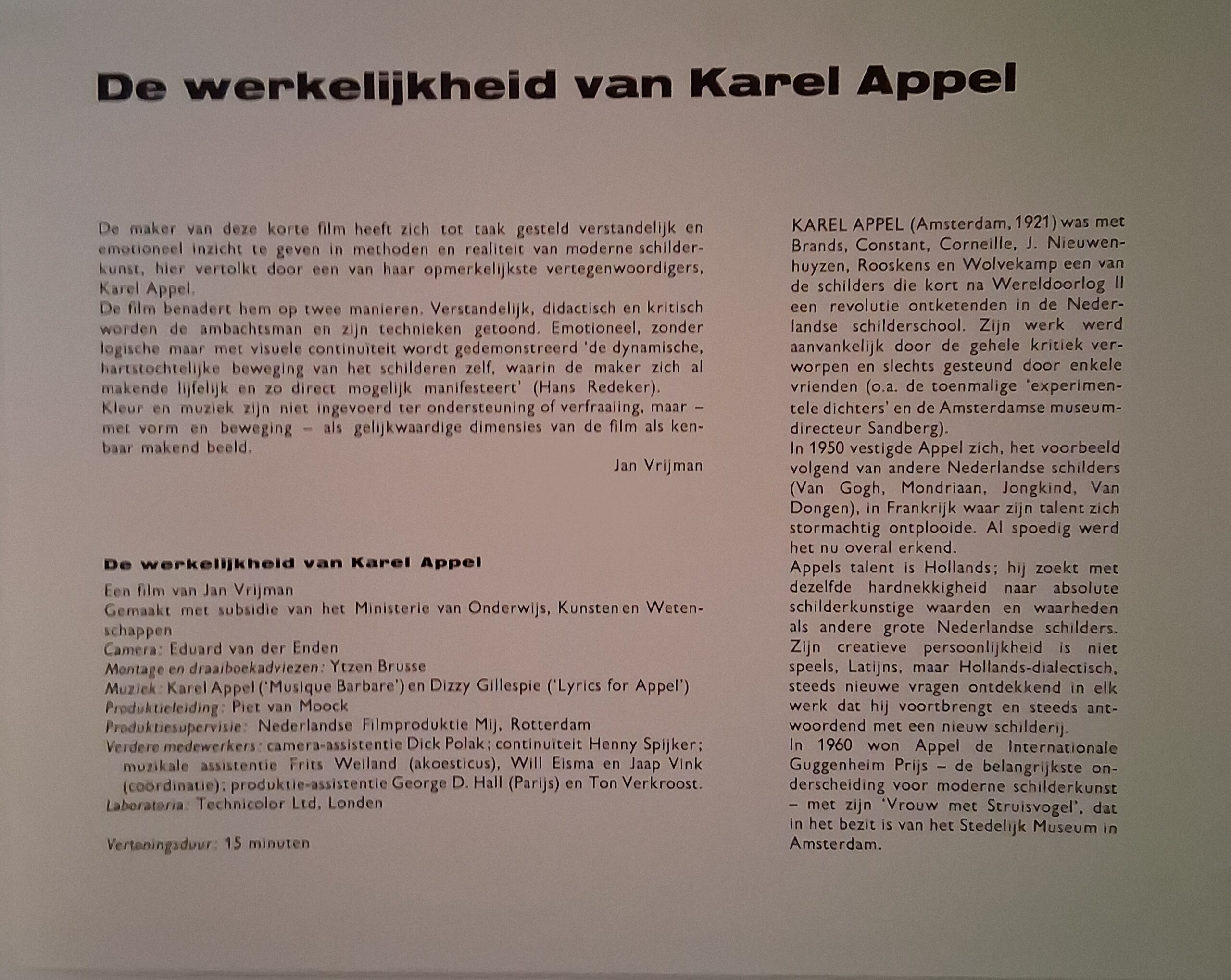 Voorafgaand aan de uitgave van Musique Barbare werd de film op 5 juni 1962 gepresenteerd in het Stedelijk Museum te Amsterdam. De uitnodigingskaart is bijgevoegd. Ter gelegenheid van de presentatie is er een vouwblad verschenen met een toelichting van Jan Vrijman en een korte biografische schets over Karel Appel. Op de voorzijde is het schilderij ‘Vrouw en struisvogel’ afgebeeld. Ook dit vouwblad is toegevoegd.
